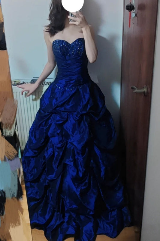 Princess Sapphire - Strapless Beaded Courtly Ball Gown, Royal Blue Party Dress gh7067