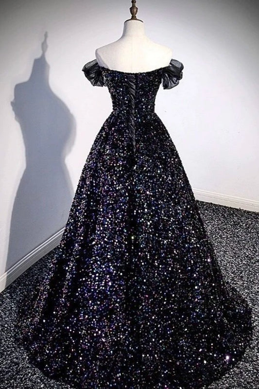 Midnight Galaxy - Off-the-shoulder dazzling sequined evening gown gh7072