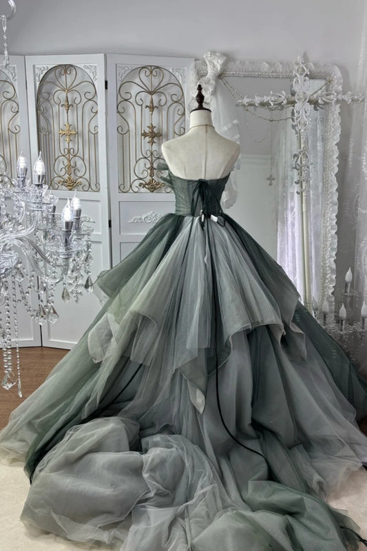 Forest Green Gradient Ball Gown Beaded Strapless & Oversized Tulle gh7064