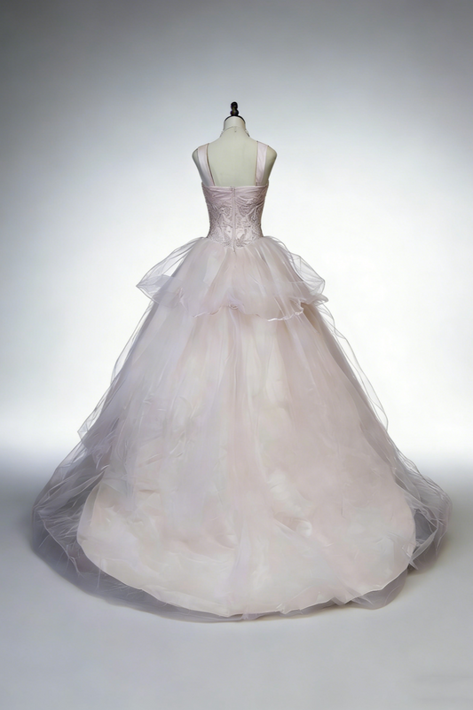Peach Pink Layered Wave Strapless Beaded Ball Gown gh6925