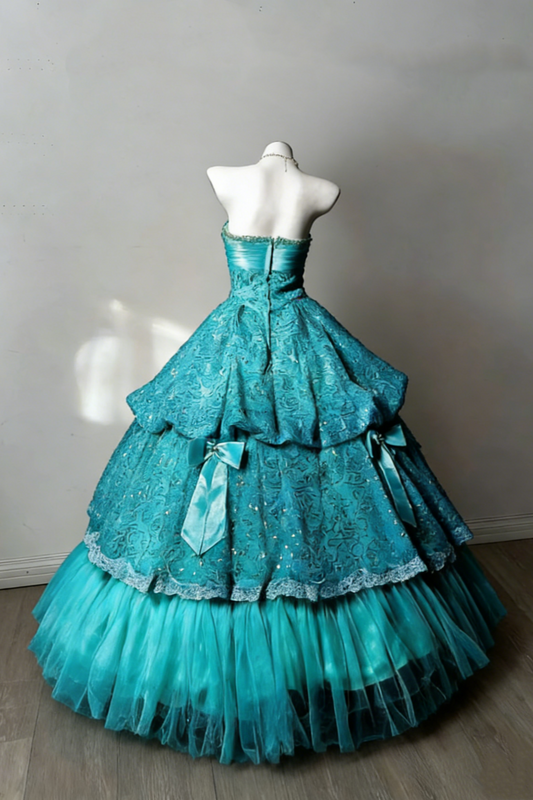 Lake Blue Star Wave Strapless Sequin Lace Layered Ball Gown gh6928