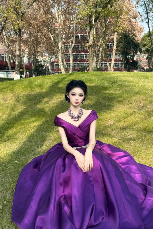 Purple Long Satin Ball Gown gh6902