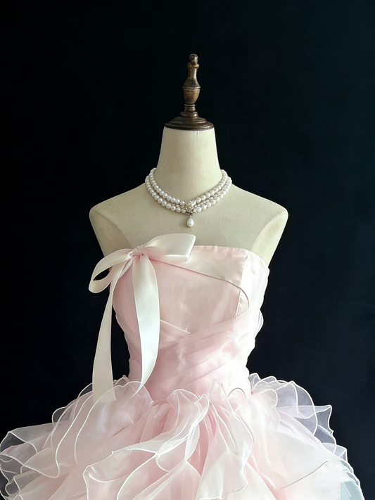 Light Pink Bow Strapless Ball Gown - Dress for Quinceañera & Coming-of-Age Party gh6949