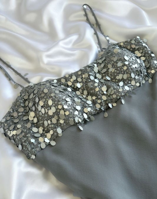 Orange Gradient Exquisite Beaded Spaghetti Strap Midi Chiffon Slim Ball Gown Evening Dress Party Dress Prom Dress gh3214