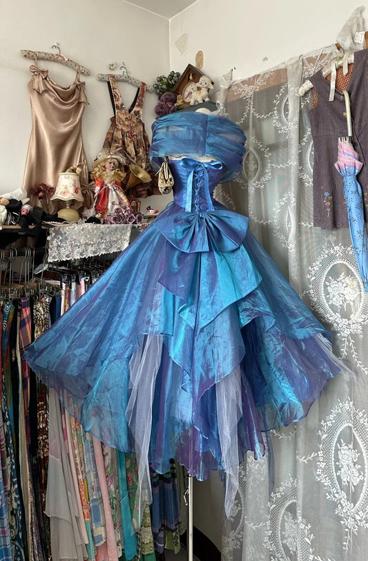 Vintage Blue-Purple Mermaid - Iridescent Satin Mermaid Dress, Vintage Girl Gown. gh7087