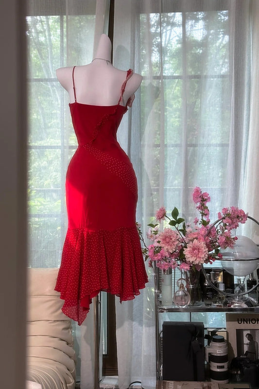 Red Rose Dream - 3D Floral Spaghetti Strap Mermaid Dress, Asymmetric Ruffle Date Night Maxi Dress gh7090