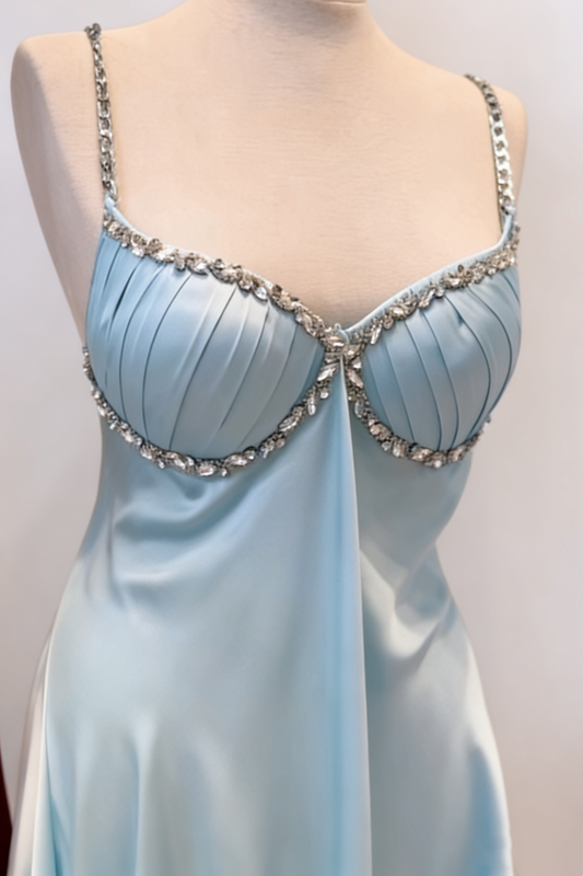 Baby Blue Luxury Beaded Cami Dress Satin Slim Fit Party Mini Dress gh7001
