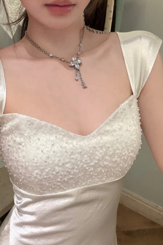White, Simple Yet Elegant Long Bridesmaid Dress, Birthday Party Dress gh7081