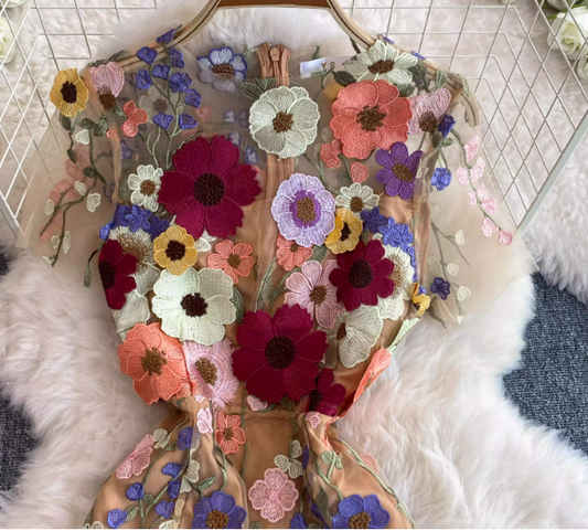 Palace style beautiful heavy work three-dimensional flower embroidery embroidery seaside holiday dress morning robe female bride high-end 11286