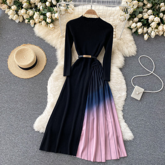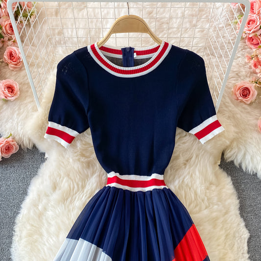 Stylish A line knitted patchwork dress 161