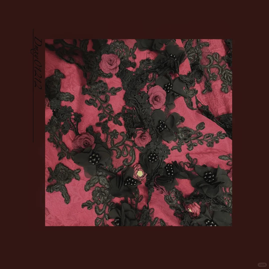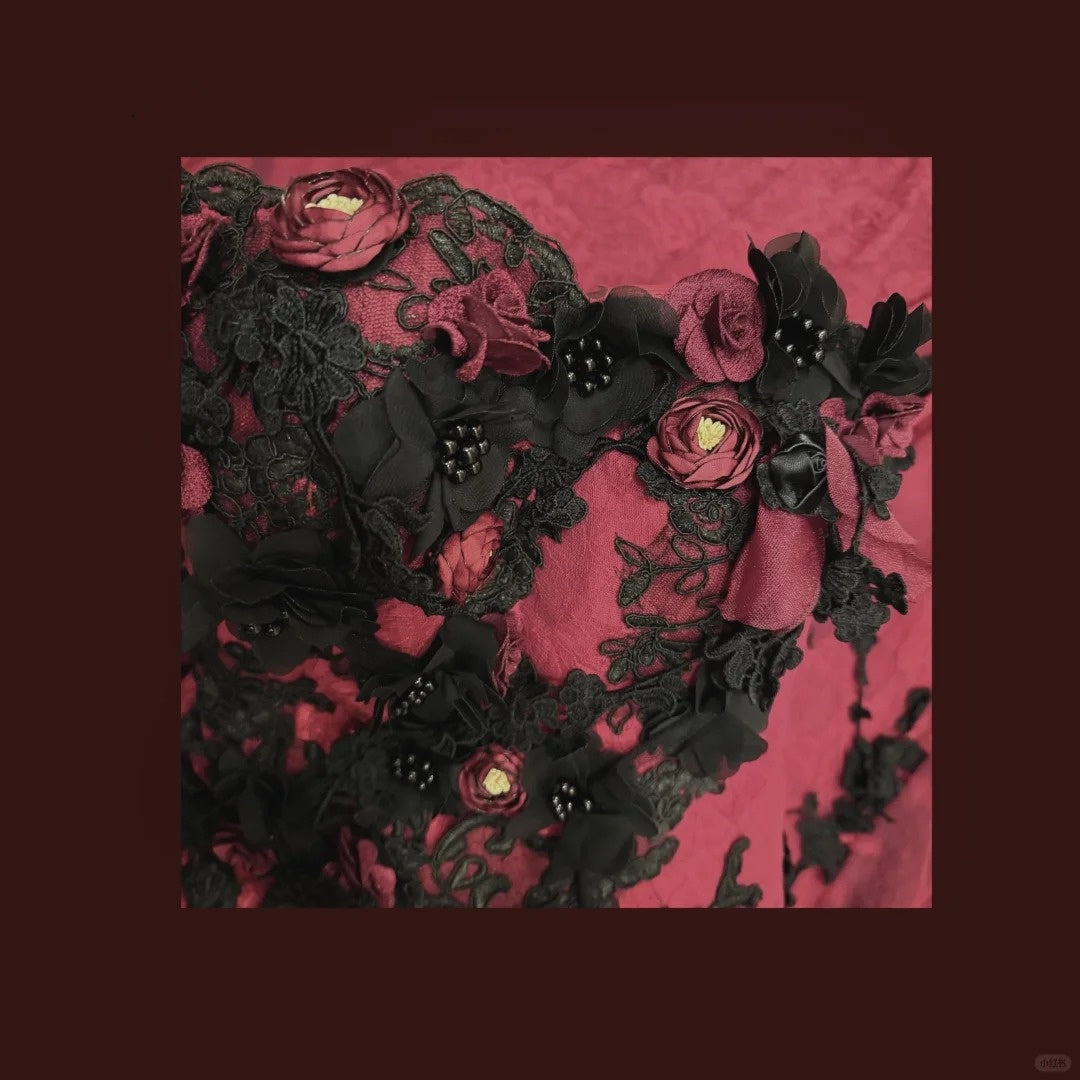 Burgundy Mysterious Red Rose Gorgeous Exquisite Lace Tulle Long Floor-Length Trailing Ball Gown Evening Gown gh4253