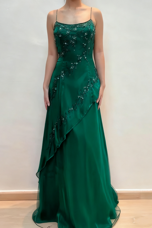 girlhomeshops- Green Retro Beaded Trailing Evening Gown gh6213