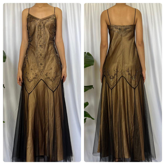 Golden Brown Vintage Fashion Elegant Exquisite Beading Long Chiffon Satin Tulle Ball Gown Evening Dress Party Dress Prom Dress gh3723