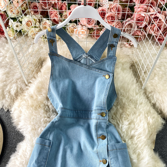 Denim suspender dress split sleeveless suspender vest skirt 3312