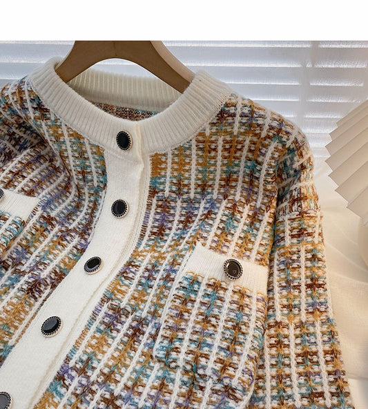 Denim sweater splicing coat versatile knitted cardigan 4965