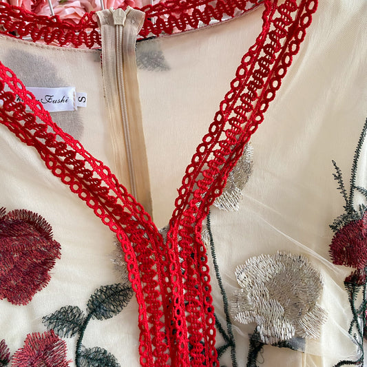 Design sense mesh embroidery waist closing large swing skirt 3300