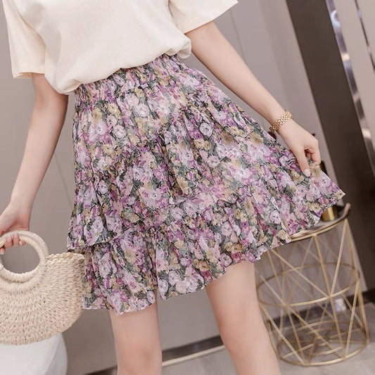 Flower skirt, country style, oil painting little fresh chiffon cake skirt 3547