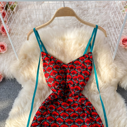 Floral skirt sexy backless slim Hip Wrap Dress 2822
