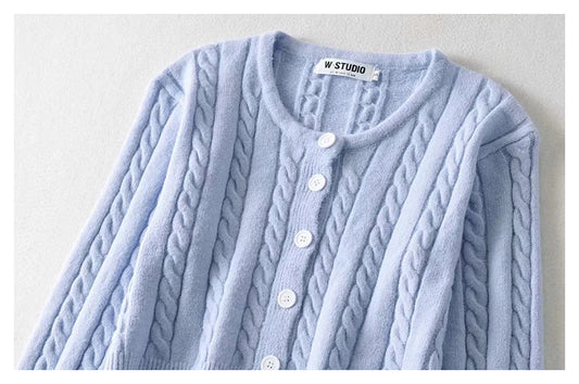 Flower sweater cardigan high waist single breasted long sleeved sweater 7222