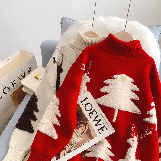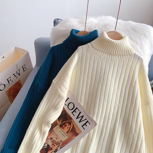 High neck Pullover Sweater design sense two long sleeved bottomed tops 6608