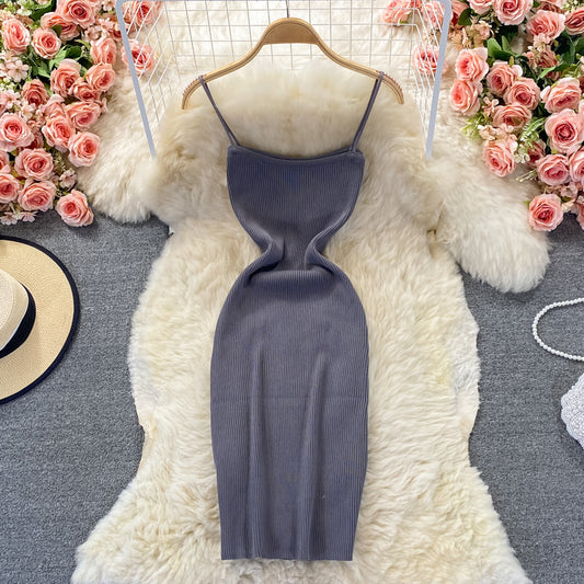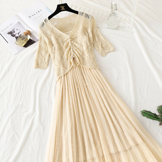 Hollowed out Crochet sweater mesh suspender skirt 4329