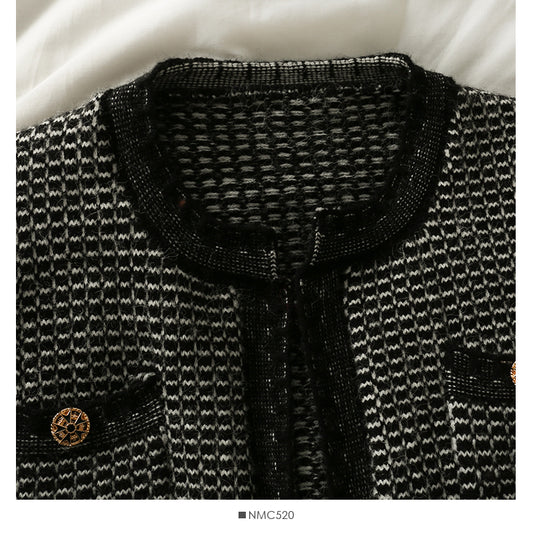 Hong Kong Style checkered single breasted cardigan sweater 1795