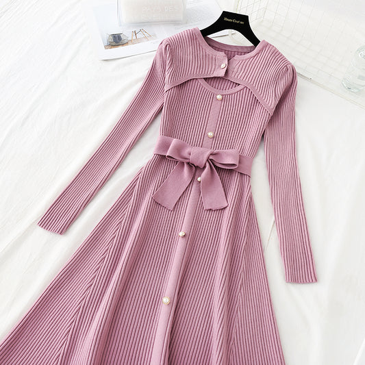 Hollowed out bat sleeve sweater mesh suspender skirt 4313