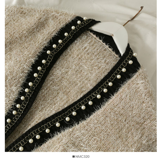 Hong Kong style retro nail bead medium long cardigan loose Long Sleeve Jacket Women 2042