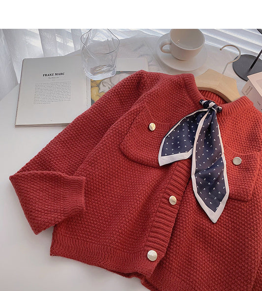 Hong Kong Style Vintage tweed round neck single breasted cardigan small coat 2108