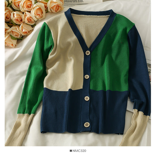 Hong Kong Vintage contrast stitched single breasted cardigan top women's 2025