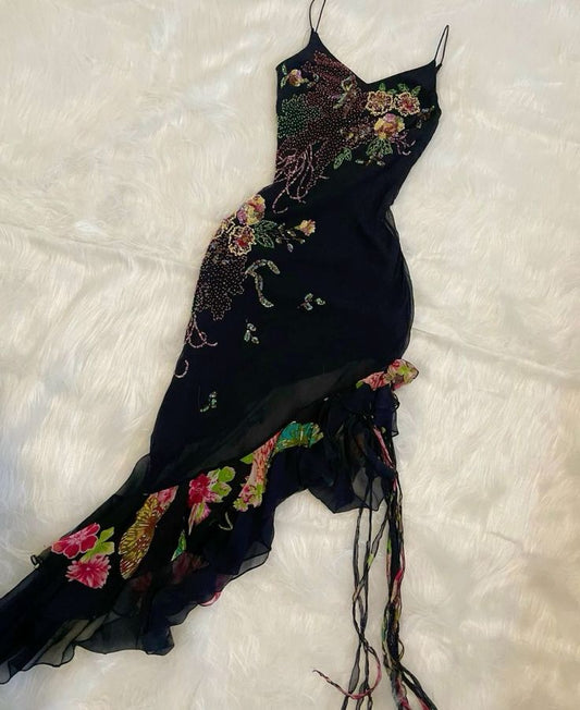 Dark blue homecoming dress Y2k mini backless dress with sparkling floral rhinestone ruffles short chiffon ball gown evening gown party dress gh4716