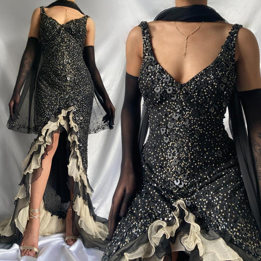 Black Sparkly Elegant Ruffled Tulle Long Sequin Ball Gown Prom Dress Evening Gown Party Dress gh3141
