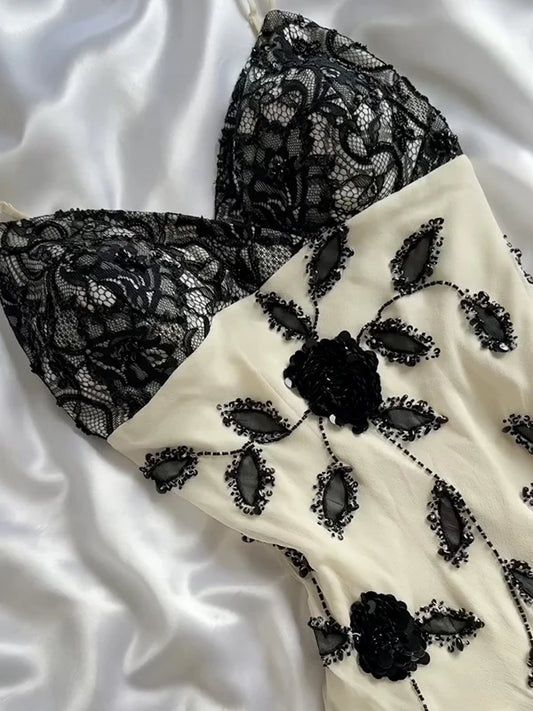 Ivory White Shiny Fashion Exquisite Beaded Lace Spaghetti Straps Long Chiffon Ball Gown Evening Dress Party Dress gh3402