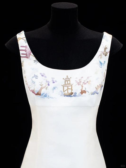 Ivory White Romantic Elegant Exquisite Beaded Backless Long Chiffon Ruffle Homecoming Dress Prom Dress Evening Dress Birthday Holiday Party Dress gh4009