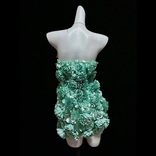 Mint Green Floral Short Satin Homecoming Dress Prom Dress Birthday Dress gh4637