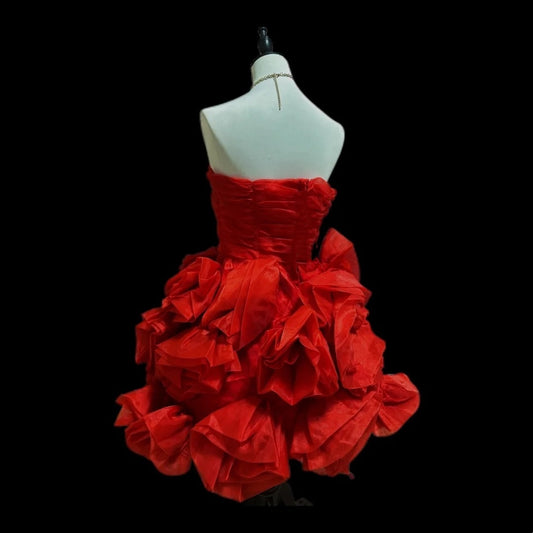 Red Beaded Short Ruffle Satin Homecoming Dress Prom Dress Birthday Dress gh4634