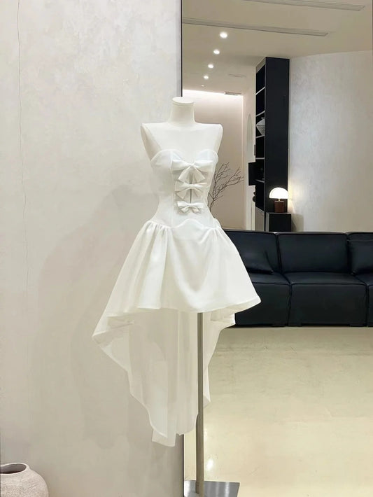 White beautiful princess homecoming dress short chiffon ball gown evening dress birthday dress gh4523