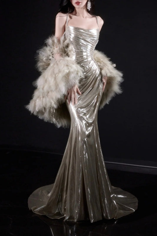 girlhomeshops- Silver Sparkling Mermaid Slimming Evening Dress gh6211