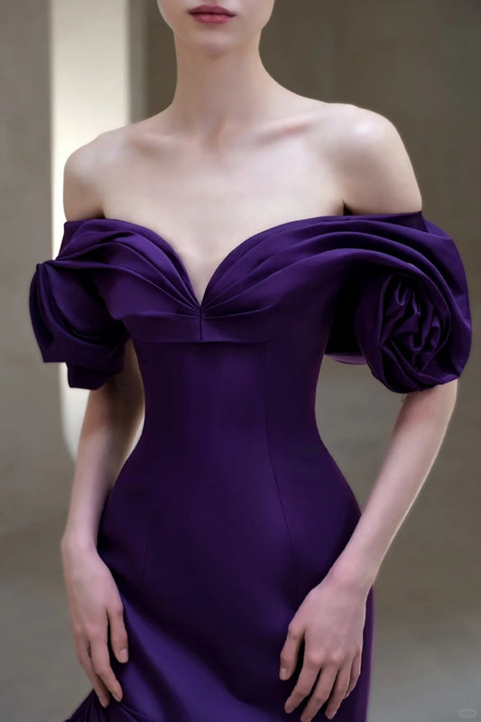 girlhomeshops-Purple Elegant Long Satin Train Prom Dress gh6236