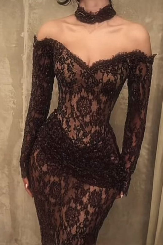 girlhomeshops-Black Lace Sexy Long Prom Dress gh6226