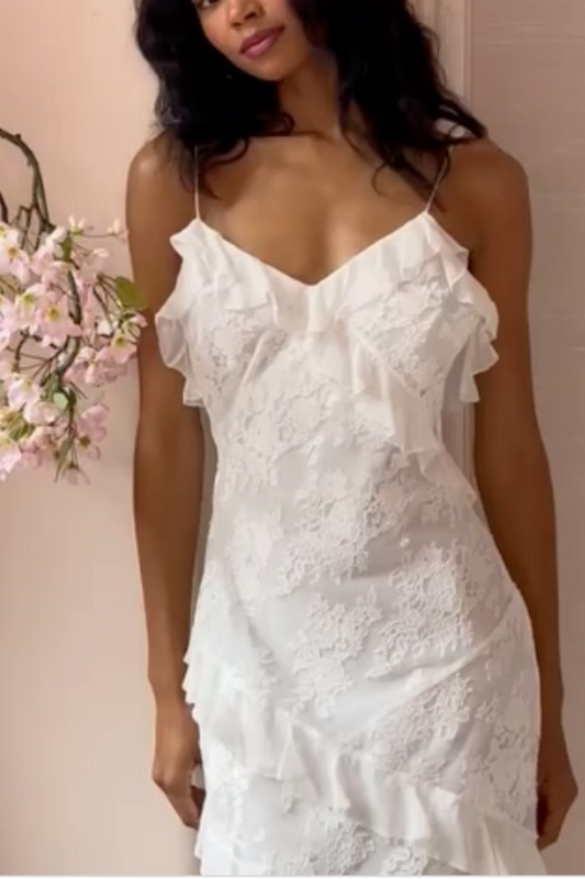 White simple elegant spaghetti strap lace long ball gown multi-layered evening dress gh3005