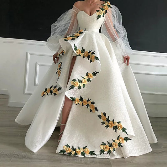 White yellow three-dimensional flower heart-shaped neckline long ball gown evening dress wedding dress gh993
