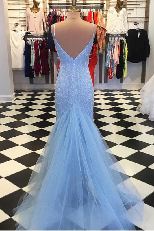 Sparkly Open Back V Neck Spaghetti Straps With Prom Dress gh1010