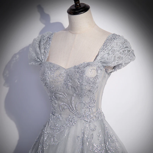 Baby Blue Slit Prom Dress Off-the-Shoulder gh706
