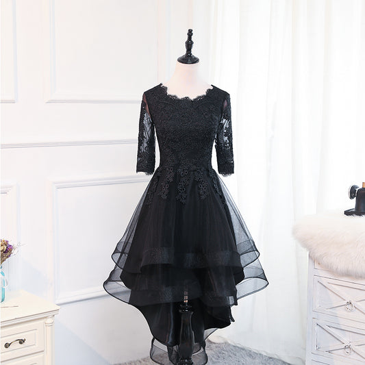 Black Sweetheart Lace And Tulle Long Party Dress, Elegant Bridesmaid Dress gh465
