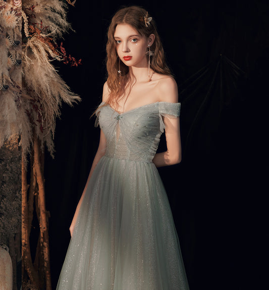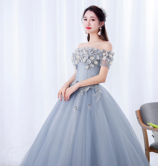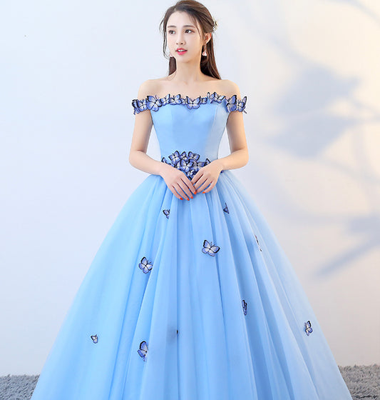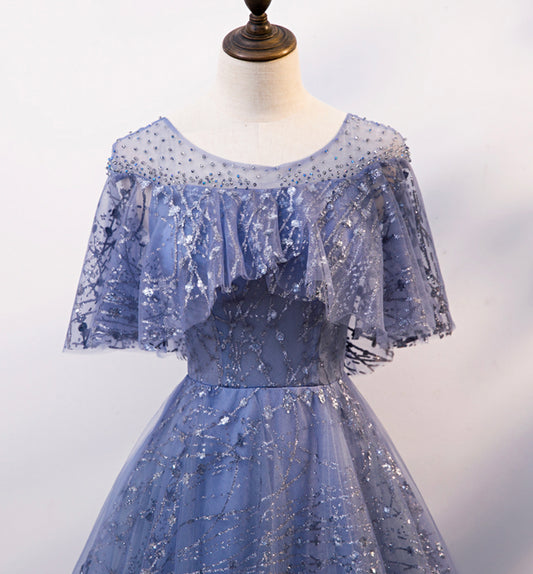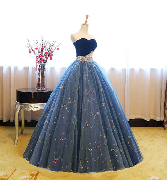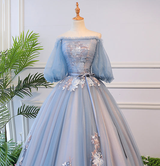 Blue tulle lace long ball gown dress blue evening dress 8622