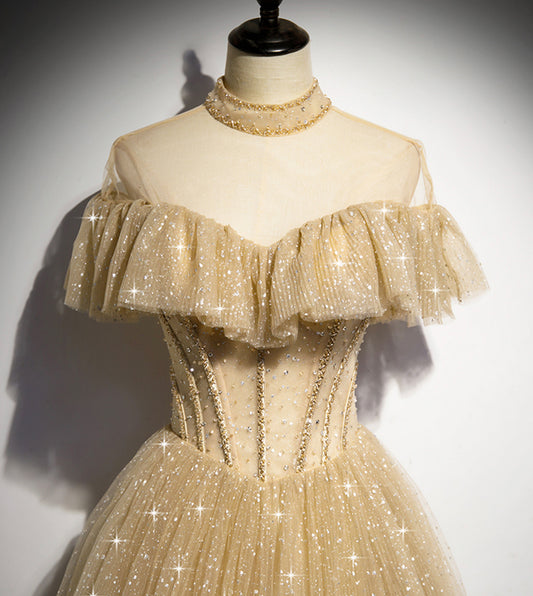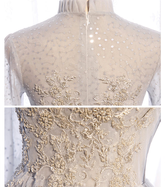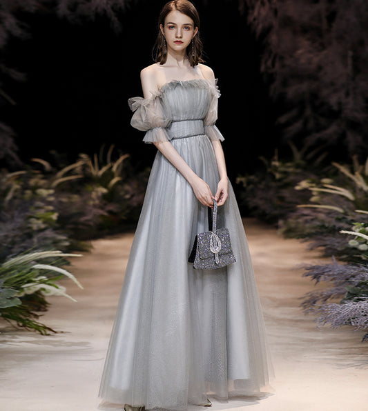 Burgundy tulle beads long prom dress one shoulder evening dress 8552