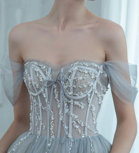 Simple A line v neck long prom dress off shoulder evening dress 8503
