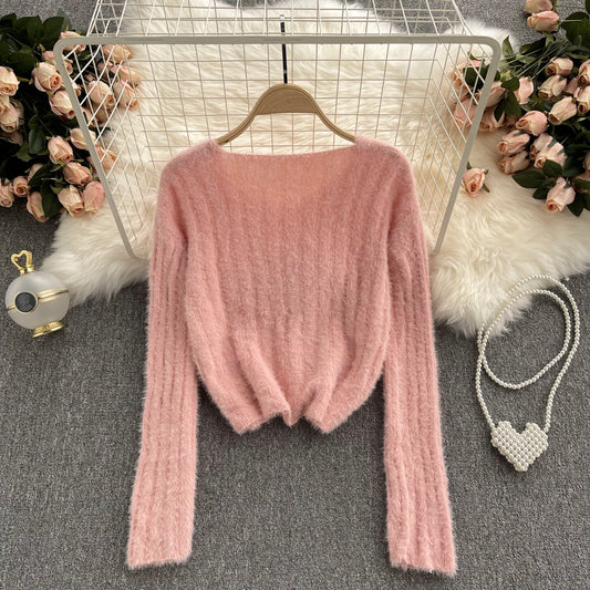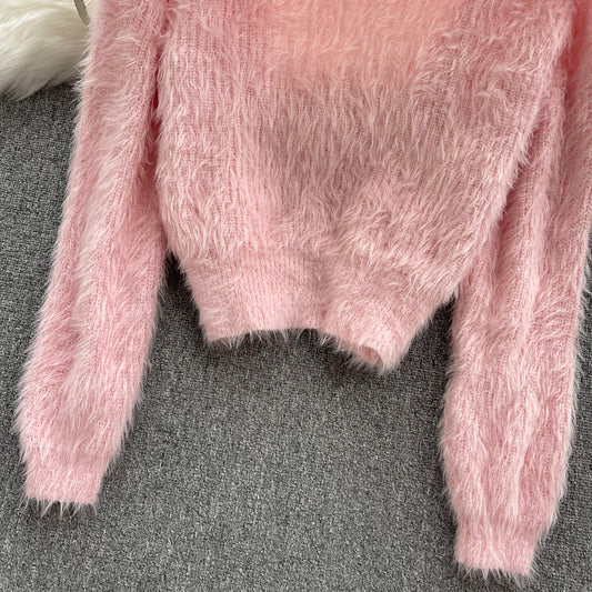 Sweet temperament imitation mink hair high waist short sweater coat 1620