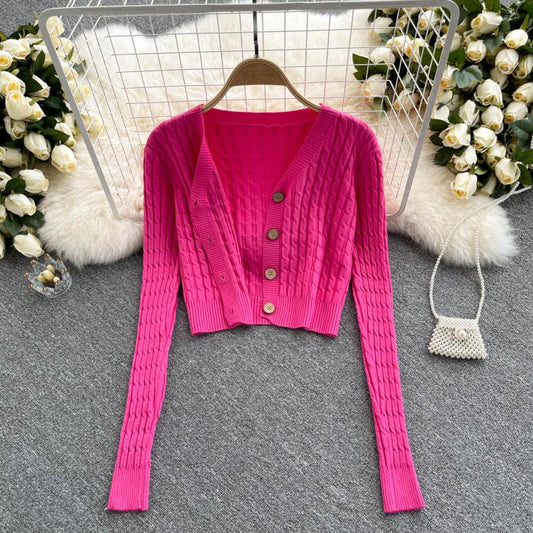 Knitted cardigan, western style coat, female V Neck Sweater Coat 1610